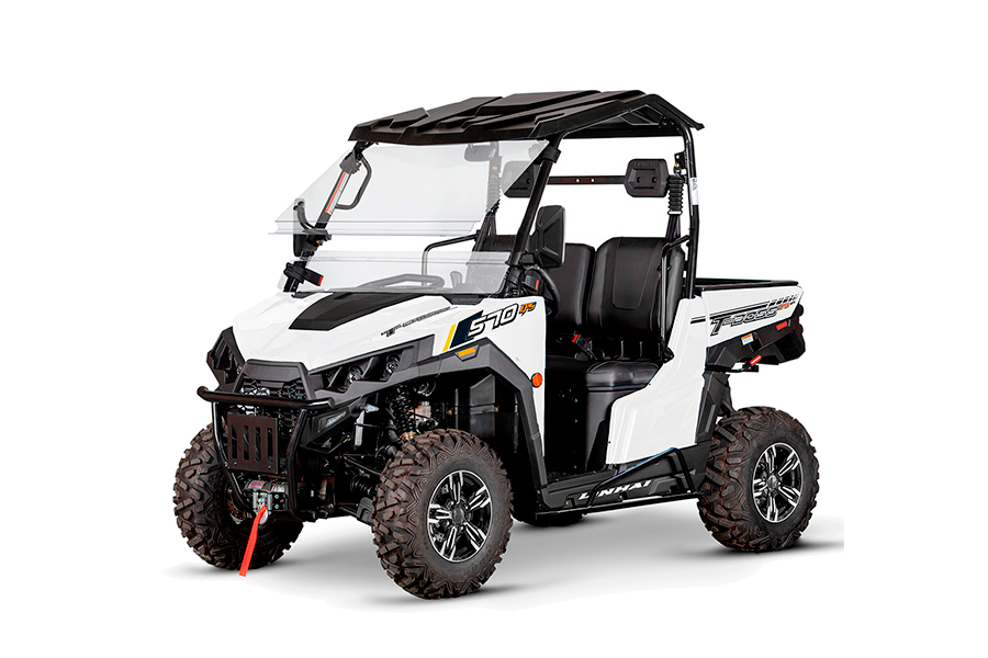 Con un diseño moderno y de líneas deportivas claramente atrayentes, el nuevo modelo T-BOSS 570 EFi EPS se presenta como un utilitario todoterreno preparado para facilitar cualquier tarea. El excelente rendimiento de su nuevo motor de 499cc con refrigeración líquida, soportado por un robusto chasis con suspensión independiente y tracción a las cuatro ruedas, confirma la máxima eficacia de este modelo. Al mismo tiempo, su ergonómico interior y la dirección asistida confieren una comodidad muy agradable en su uso.
